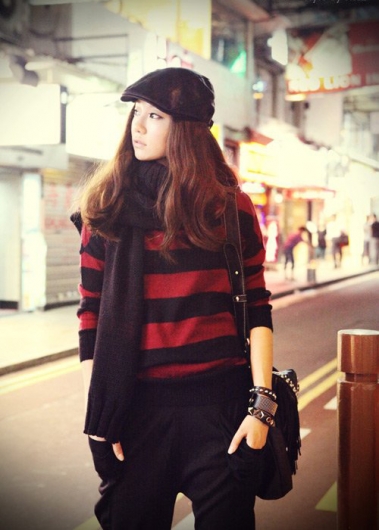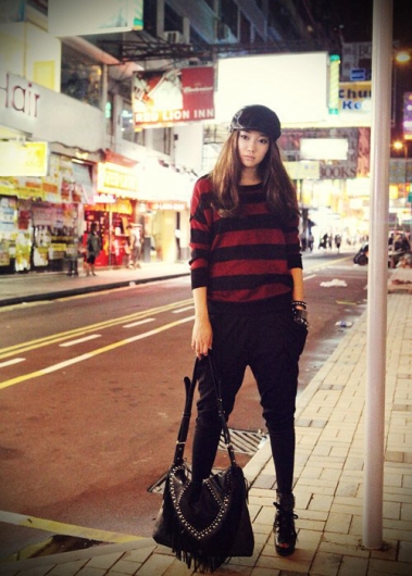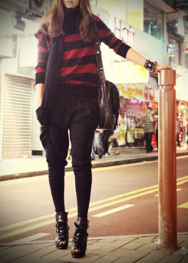 • Пуловер в красно - черную полоску