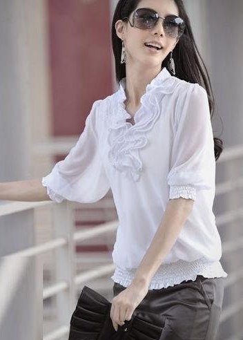 Хотите сочетать деловой образ с элегантностью, романтичностью и женственностью? Тогда эта восхитительная классическая летящая шифоновая блузка с рюшами свободного кроя с коротким рукавом - именно для Вас! Ткань и крой идеально подчеркнут фигуру, данная модель идельно подойдет как для офиса, так и для любых мероприятий, торжественных событий и праздников. Модель представлена в двух основных цветах - белый и черный, что делает ее подходящий к любому деловому образу.
