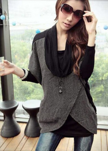 Удлиненный свитер с запахами и воротником "хомут" |